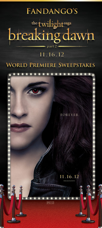 As part of a special sweepstakes on Fandango, two lucky fans will also have the chance to win a trip to the world premiere of “Breaking Dawn, Part 2″ in Los Angeles. Visit www.fandango.com/sweepstakes/